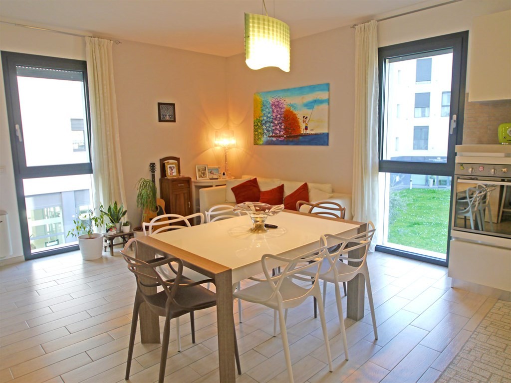 SIENA, DOWNTOWN. A nice apartment for sale on the first floor of a modern building featuring a lift and solar panels. The apartment measures approximately 80sq.m and is comprised of open space with kitchen, double bedroom with spacious balcony, single bedroom, two bathrooms and storage/laundry room. Features: covered car parking space, cellar, condominium parking. Almost facilities are reachable on foot.
