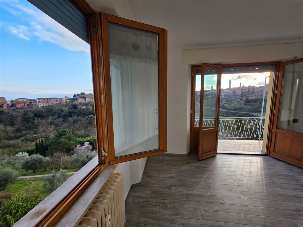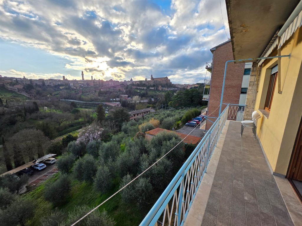 SIENA DOWNTOWN. A recently renovated apartment of approximately 90 sq.m near the old city centre (Porta Ovile), on the second floor. The layout offers a spacious entry way, living room accessing onto a panoramic balcony boasting a spectacular view towards the picotresque medieval city centre, kitchen, two bedrooms, two bathrooms and a storage room. All the interiors enjoy a striking luminosity. Features: cellar on the lowe ground floor, condominium parking (car parking spaces are not assigned).