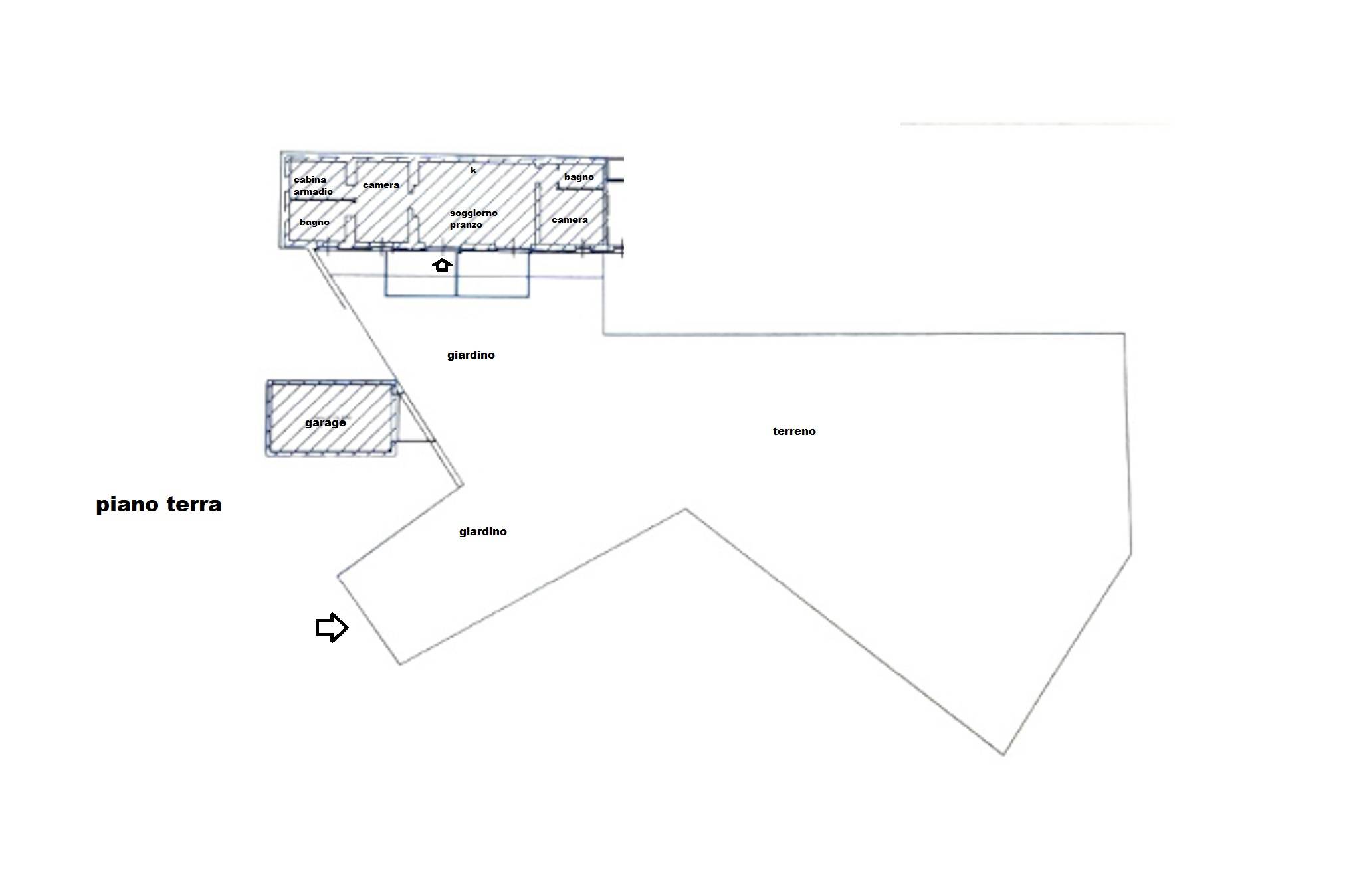 The property also includes a private garden and a plot of land with olive trees for a total of approximately 1,000 sqm, as well as a 28‑sqm garage.