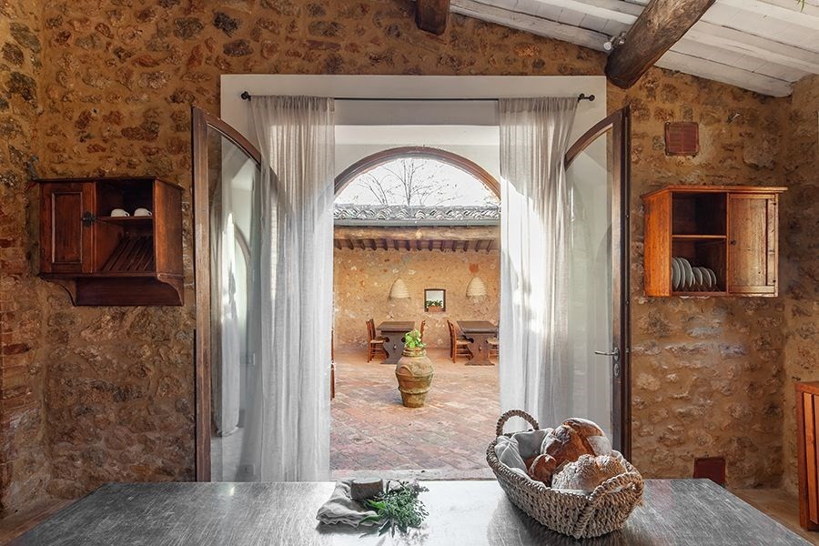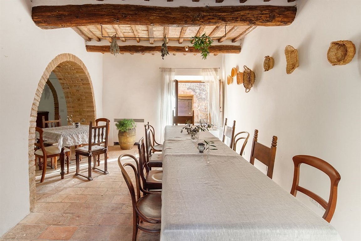 The villa features 9 spacious, beautifully furnished bedrooms, each with its own en-suite bathroom. The historical architecture has been carefully preserved, maintaining original materials such as exposed stone, terracotta floors, chestnut wood beams, and solid wood doors.