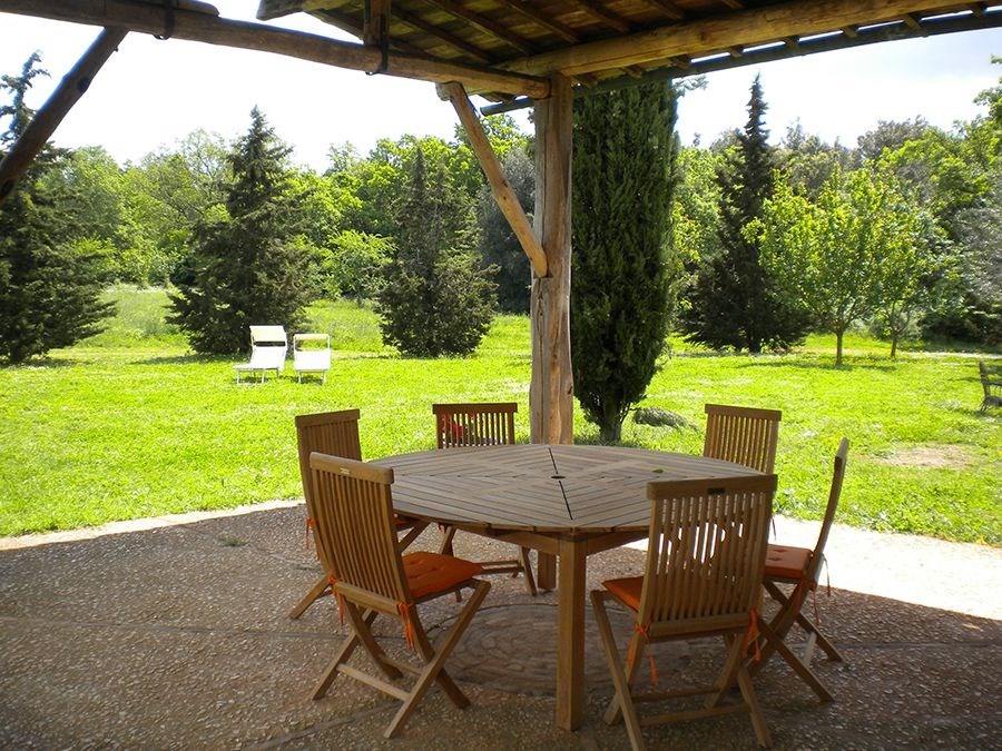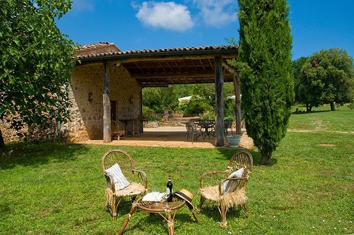 Additional features include a courtyard with a portico, an ancient stone oven, and a large paved terrace.