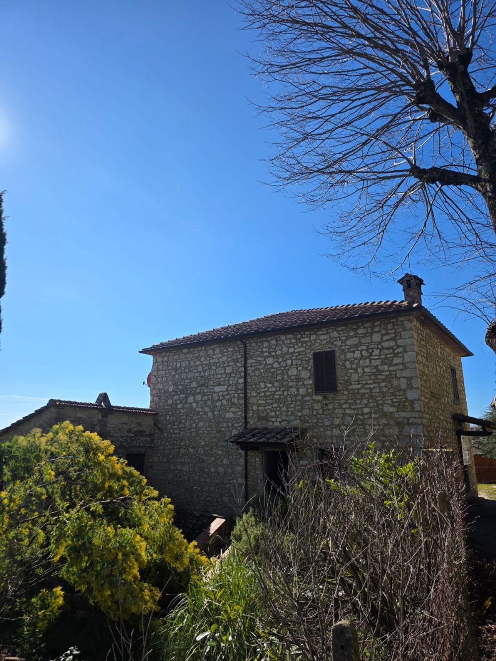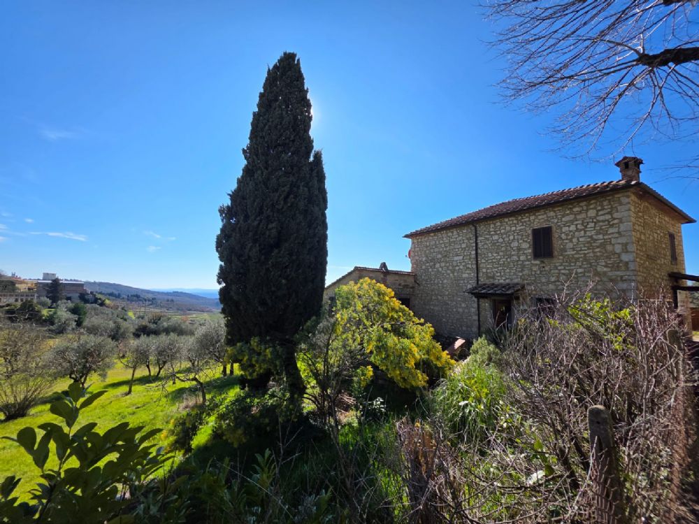 CASTELLINA IN CHIANTI. A typical country property located in the village of Castellina in Chianti, set in a panoramic and convenient position. The property covers and area of approximately 420 sqm in total and incudes two apartments on the ground and first floors ( each with a private entrance), large warehouses/garages, and an oven.The ground floor apartment includes an entryway, an open-plan living room with kitchen and fireplace, two bedrooms, a large hallway currently used as a study, a bathroom, three storage rooms, and an adjacent cellar. The first-floor apartment features a living room with a kitchenette, two bedrooms, and a bathroom.Features: 1 ha of land and a charming courtyard (former “aia”). With its prime location and excellent potential to develop all the units, this property presents a unique opportunity for anyone looking to live in the heart of Chianti or seeking an investment opportunity.
