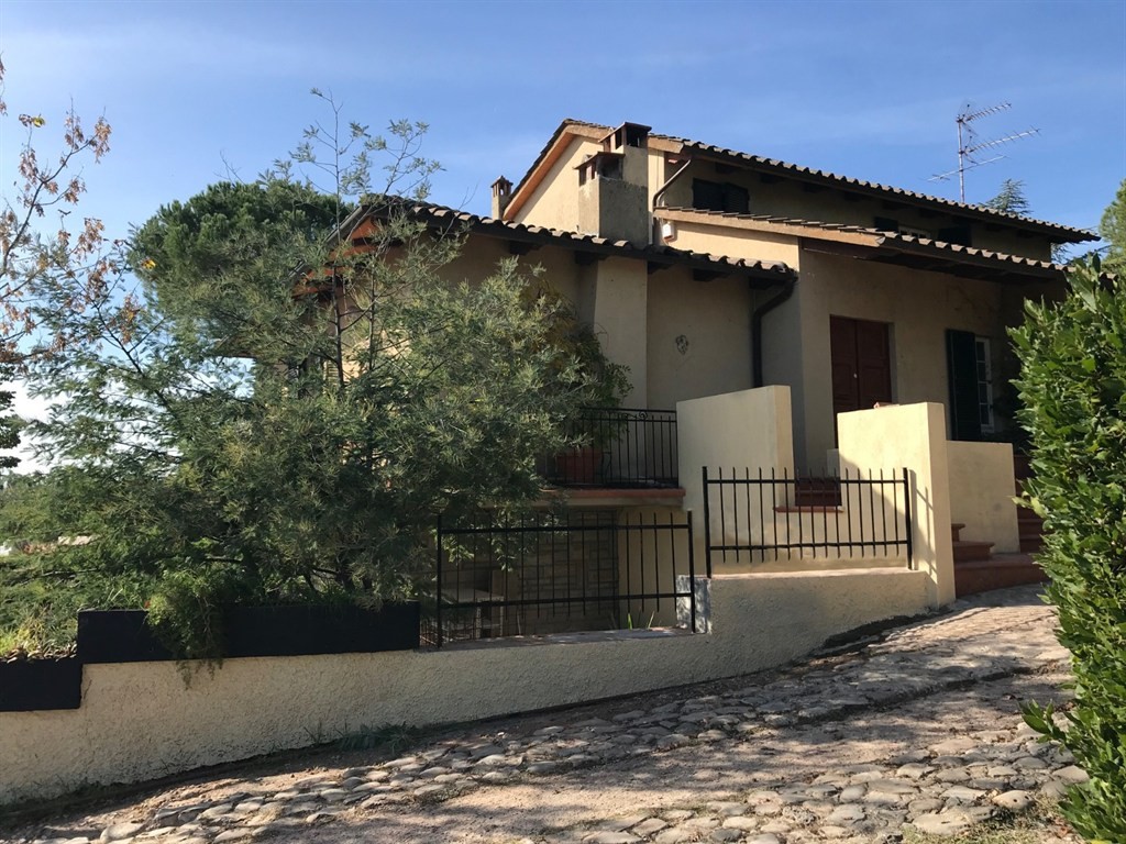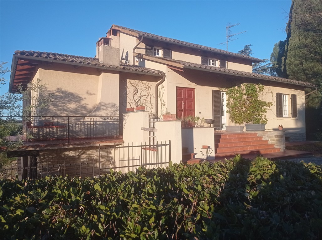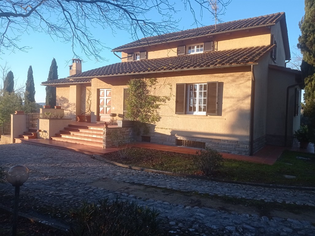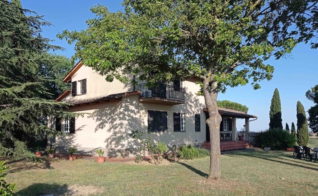 SIENA. For sale, just 4 km from Siena’s historic center, a detached villa of approx. 400 sqm, set on a ridge in a private, panoramic position with a beautiful open view over the city.Built in the late 1970s, the villa is arranged over three levels: