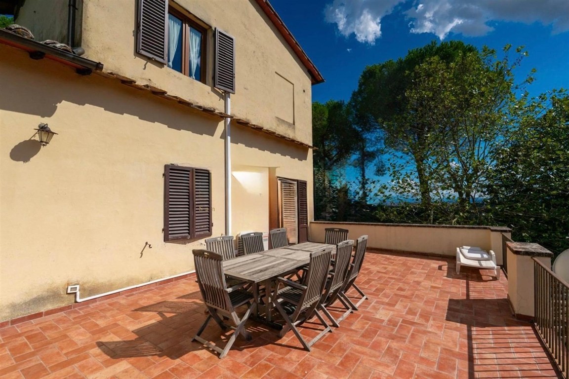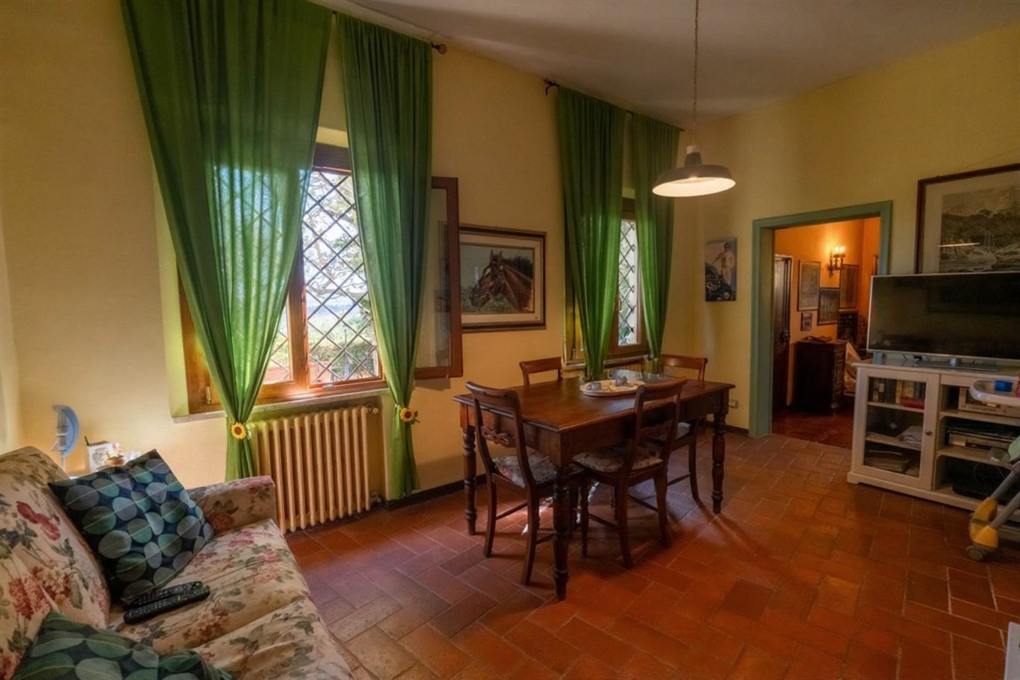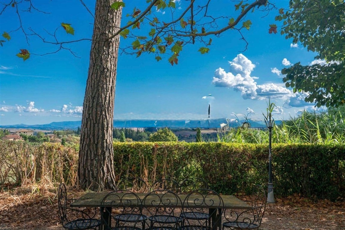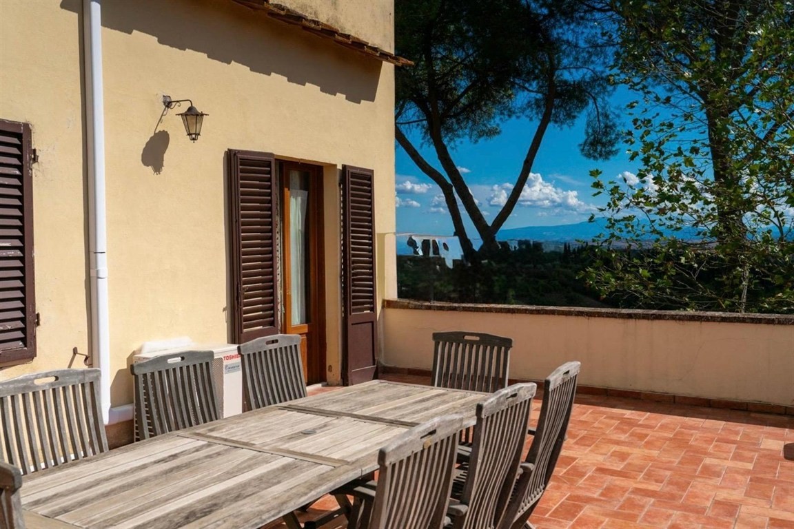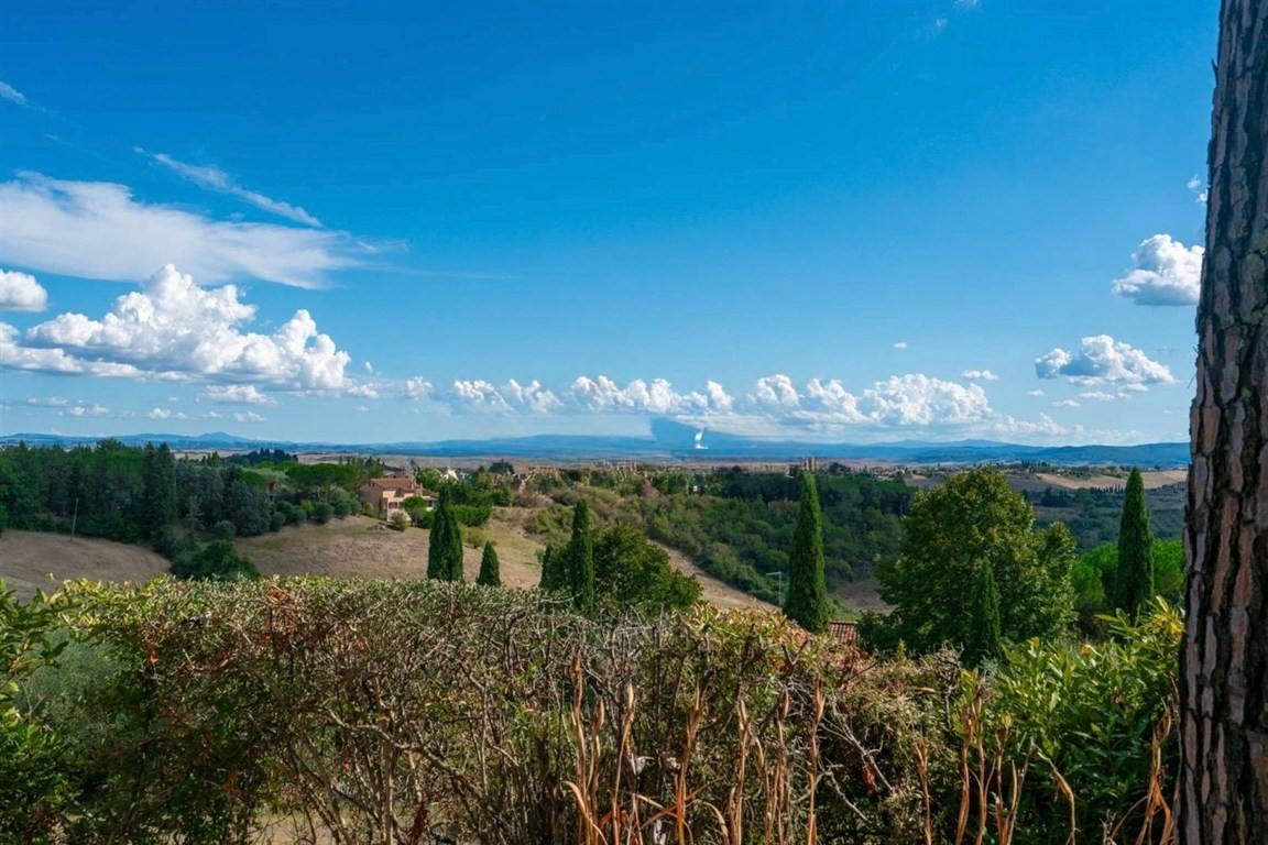 The house is spread over two main levels, plus a tower room that offers breathtaking views of the Sienese hills. The interiors are characterized by exposed wooden beams, terracotta floors, impressive fireplaces, and spacious, light-filled rooms overlooking the garden.