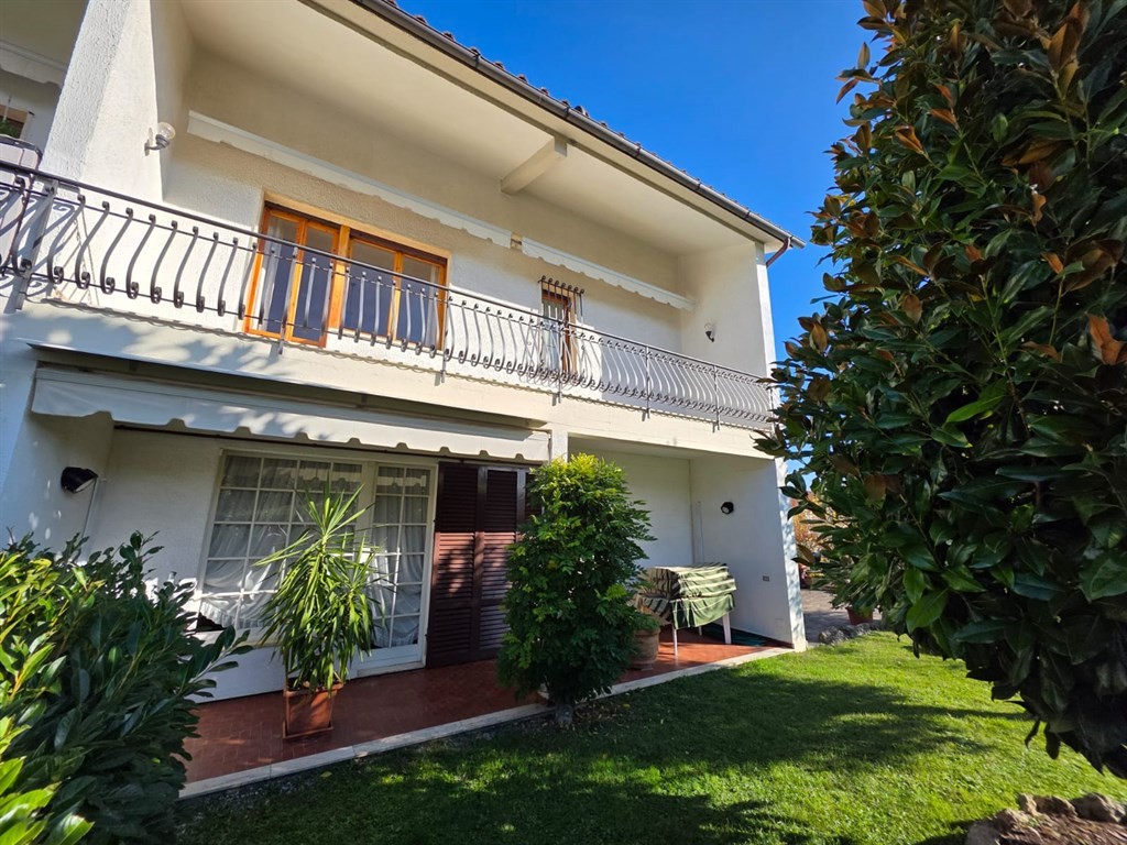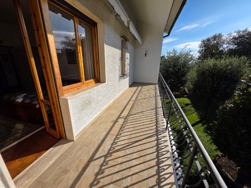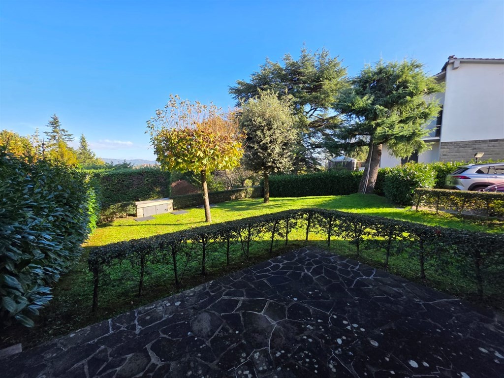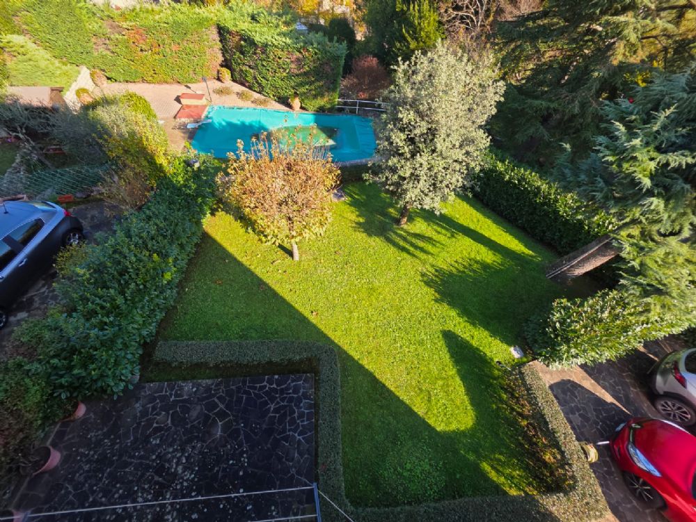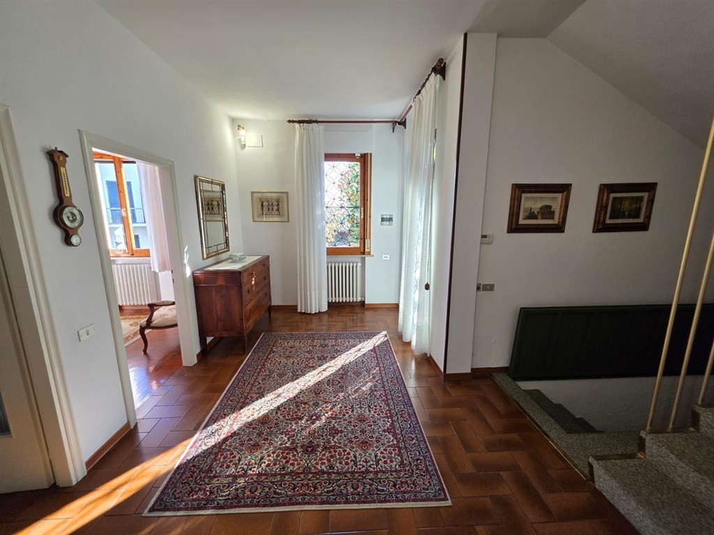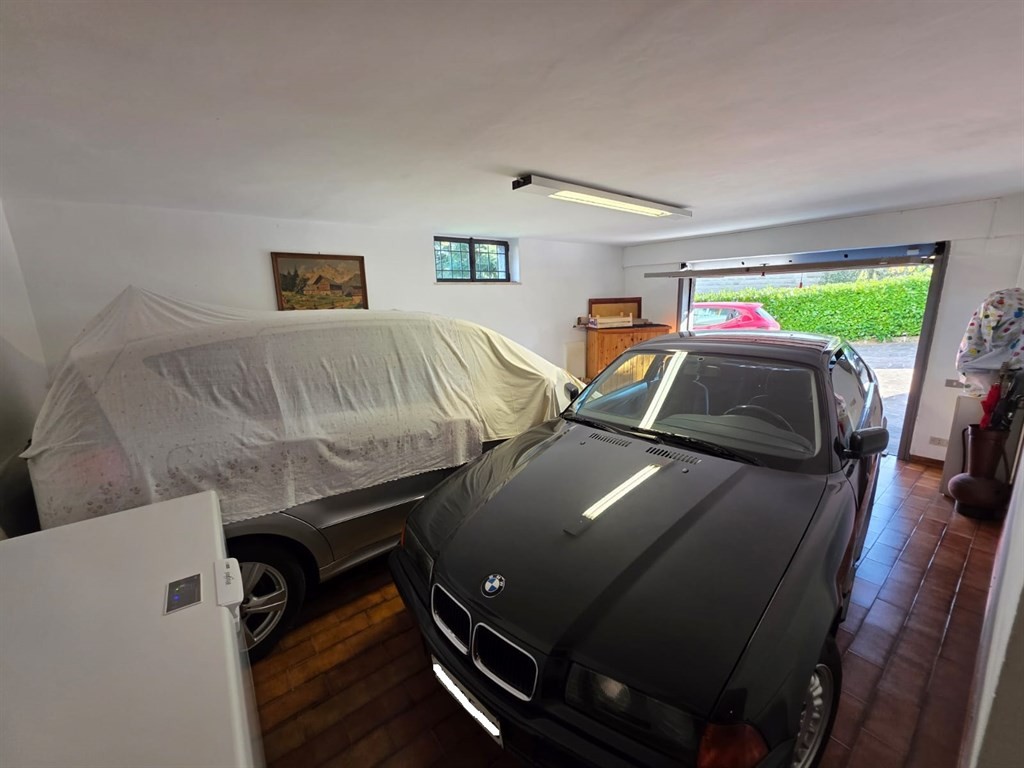 L’ingresso è completamente indipendente e, oltre al passaggio pedonale, è presente una comoda rampa carrabile che conduce a un piazzale in porfido e al garage di circa 30 mq.