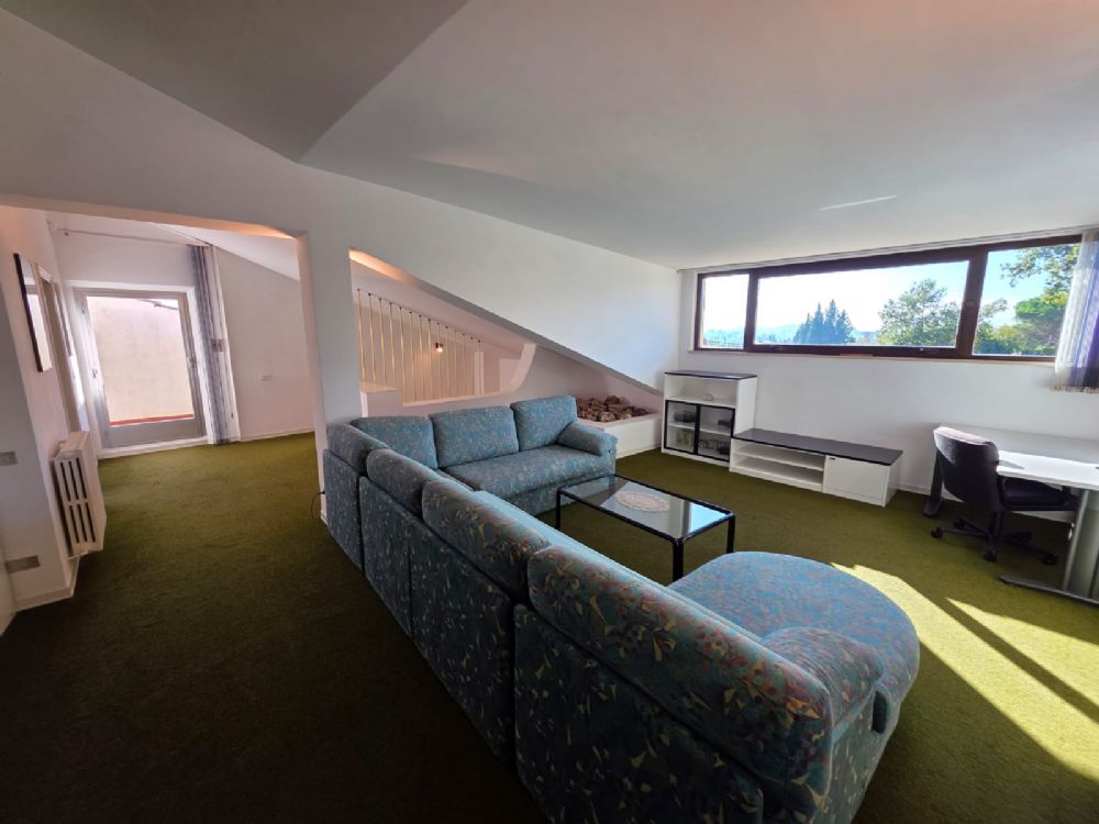 Il piano sottotetto ha una superficie di circa 90 mq, con altezze generose che la rendono perfettamente abitabile. Questo spazio è stato organizzato come un grande open space, una camera da letto, un bagno e un terrazzino a tasca che si affaccia sul tetto.