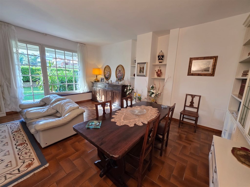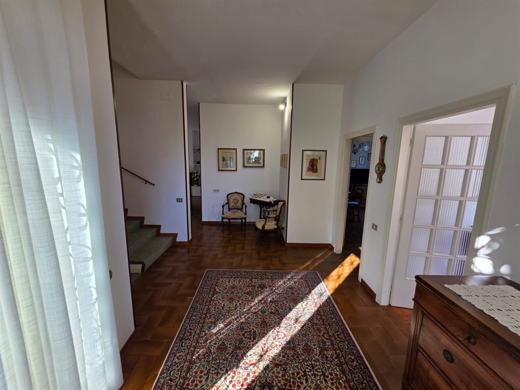 Al piano terra troviamo il portico, ampio ingresso, grande soggiorno da cui è possibile accede direttamente al resede esterno passando attraverso un secondo portico, sala pranzo con terrazzo, cucinotto con dispensa, studio e un bagno finestrato di servizio al piano.