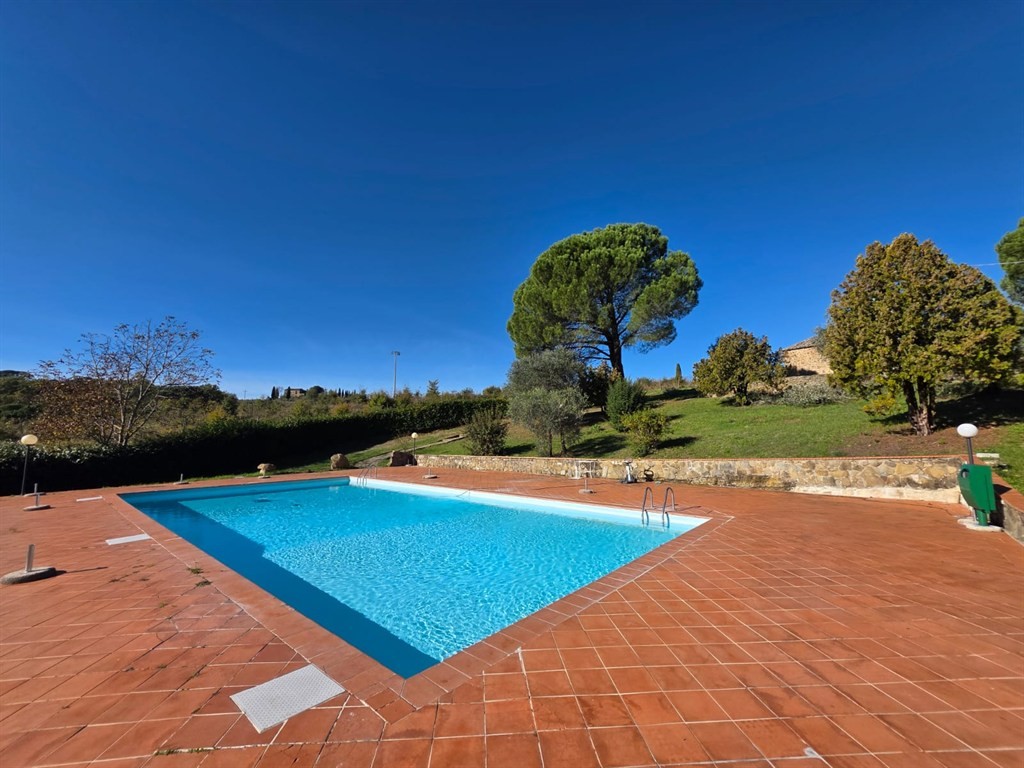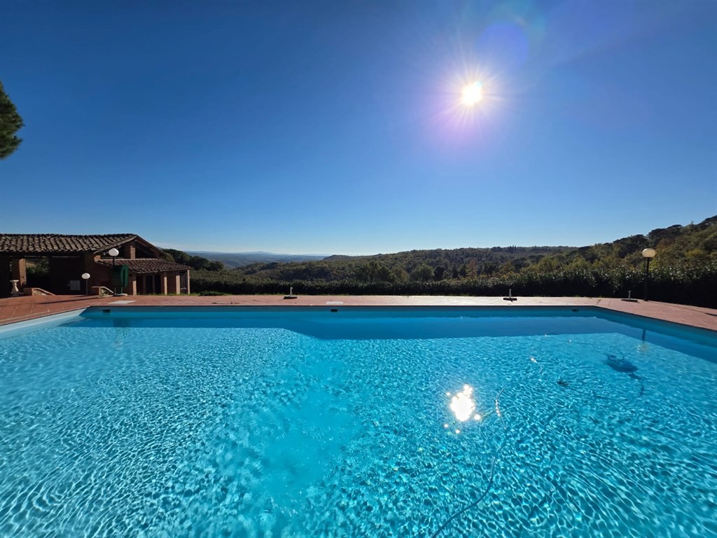 3) Complesso immobiliare anch'esso adibito ad agriturismo e suddiviso in nove appartamenti, per una superficie complessiva di 530 mq, con piscina (16x8), campo da tennis (17x37), piccolo fabbricato (circa 15 mq) che ospita un locale impianti a servizio della piscina e due servizi igienici protetti da una tettoia-porticato