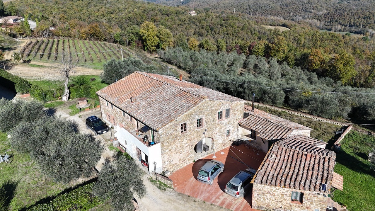 4) Casa colonica suddivisa in cinque appartamenti ad uso agriturismo, per una superficie complessiva di 240 mq, oltre a locale ristorante (circa 230 mq) con ampia veranda esterna, un magazzino ad uso lavanderia a servizio dell'agriturismo (circa 40 mq) e ulteriore fabbricato distaccato ad uso magazzino (13 mq). Distanze: Siena 20 km, Firenze (Aeroporto "A.Vespucci) 80 km, Pisa (Aeroporto "G.Galilei") 120 km, Roma (Aeroporto Fiumicino) 270 km.