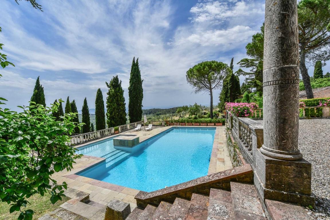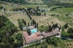 CASTELLINA IN CHIANTI (SI). Nel cuore del Chianti Classico, azienda agricola di 158,5 ha caratterizzata da una splendida villa storica, una cantina, vari edifici e casali attualmente destinati ad attività agrituristica per complessivi mq 4.431. La villa, in stile Vanvitelliano, risale al Settecento è stata ristrutturata nel 2004 ed è costituita da tre saloni di rappresentanza, due sale da pranzo, cucina, studio, 8 camere matrimoniali con bagno privato. L'edificio è dotato inoltre di magazzino, taverna con forno, cappella consacrata, giardino privato con piscina panoramica (16mx8m). I casali hanno origini trecentesche e la struttura tipica del casale toscano con facciata in pietra ed elementi in muratura, suddivisi in più unità immobiliari per un totale di 13 appartamenti destinati ad attività agrituristica. Sono inoltre presenti: ulteriore piscina (12mx3m) riservata agli ospiti dell'agriturismo, fabbricato, locali per la vendita diretta dei prodotti, cantina, frantoio, locali riservati al personale ed un fabbricato destinato a magazzini e garage. I terreni si estendono per 158,5 ettari di cui 19.4 ha vigneto Chianti classico DOCG, 21,2 ha oliveto, 105 ha bosco misto, 12.6 ha seminativi ed incolti e 0,3 ha frutteto (ciliegi, peschi, peri e meli). Varietà dei vigneti: Sangiovese, Canaiolo, Cabernet Sauvignon, Trebbiano e Malvasia. PRINCIPALI DISTANZE: Castellina in Chianti (7km), Poggibonsi (13km), Monteriggioni (23km), San Gimignano (26km), Siena (34km), Volterra (49km), Firenze (52km). AEROPORTI: Firenze Peretola (62km), Pisa Galilei (98km), Bologna Marconi (143km), Roma Ciampino (277km), Roma Fiumicino (292km), Milano Linate (339km) e Milano Malpensa (393km)