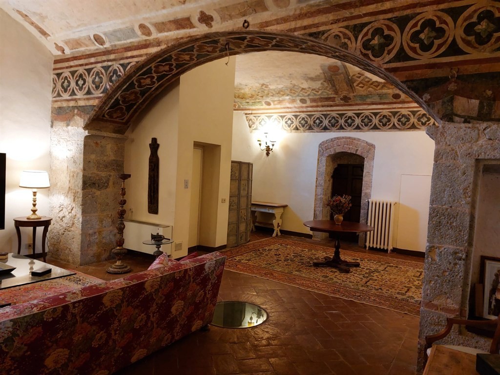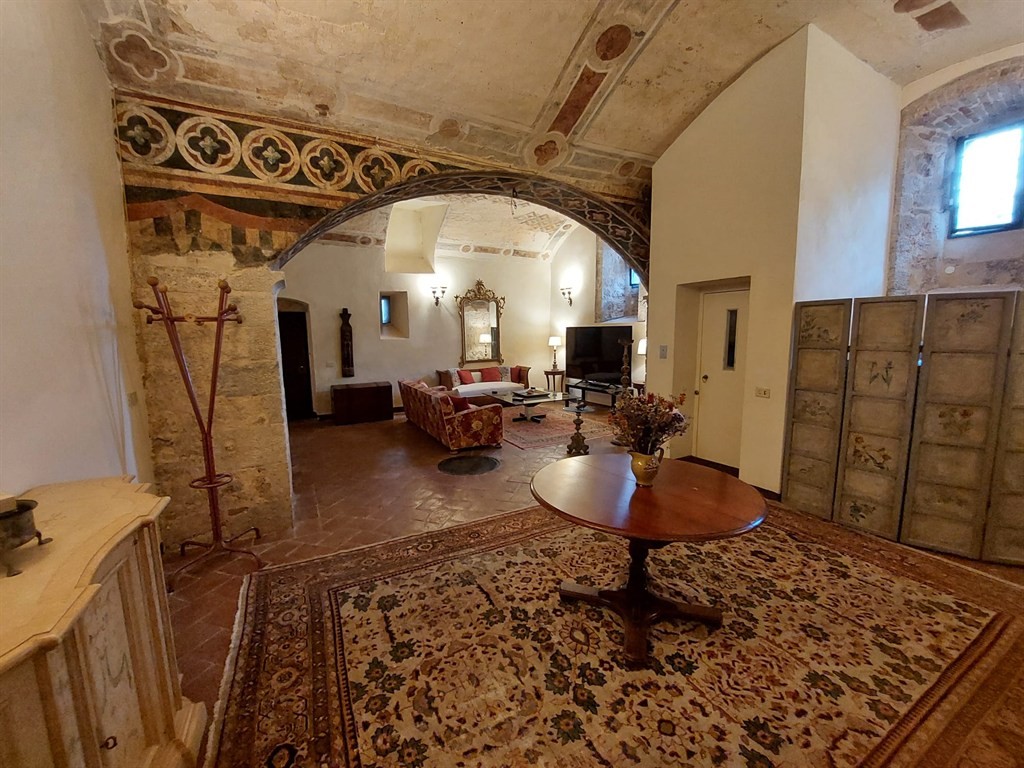 Gli ambienti comprendono saloni di grande rappresentanza (tra cui un suggestivo salone affrescato e un living con camino d’epoca), doppia cucina, cantina in pietra ideale per degustazioni o area wellness, e una zona notte che offre fino a cinque camere (in parte già presenti e in parte realizzabili secondo progetto approvato) con cinque bagni complessivi.