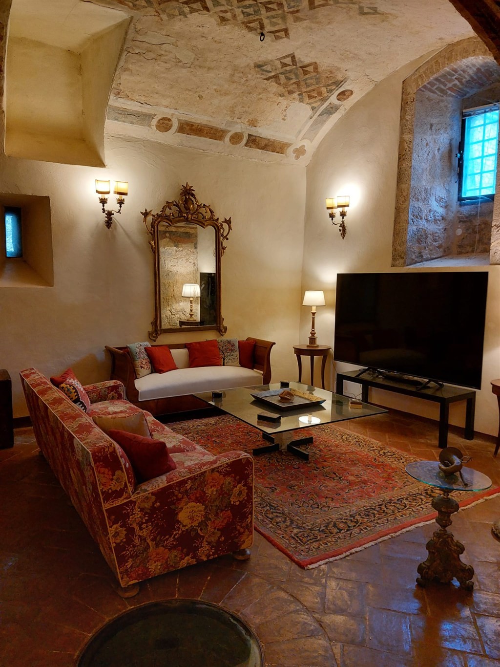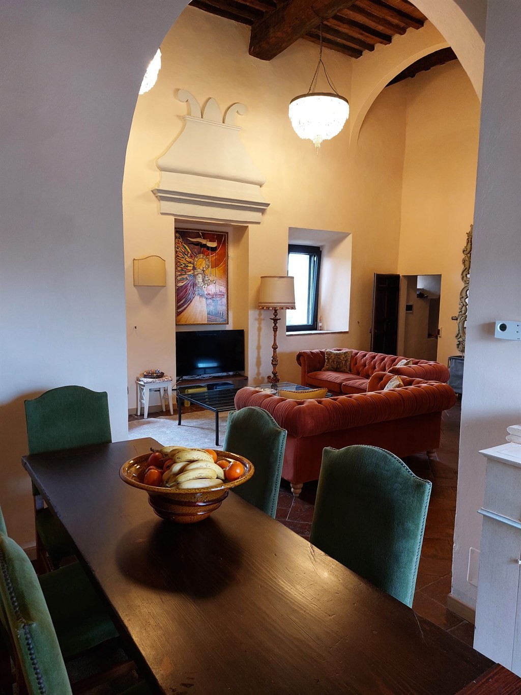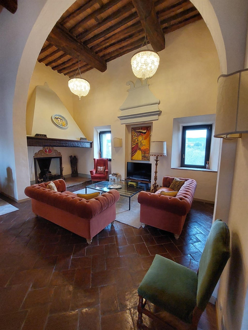 All’esterno, una terrazza panoramica con vista a 360° sulle colline del Chianti, giardino privato e cinque posti auto riservati, rarità assoluta in contesto storico. Perfetta come residenza di prestigio o come struttura ricettiva di charme (boutique hotel/relais).
